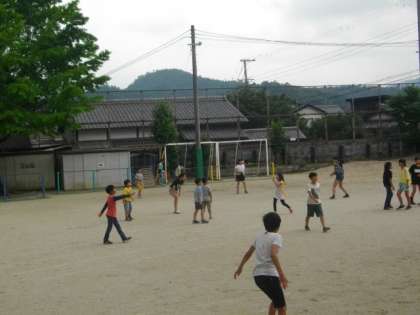 たくさんの子どもたちが外で遊んでいます。