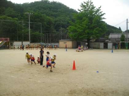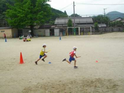 3年生は,体育でリレーをしています。4年生は,プール学習に取り組んでいます。