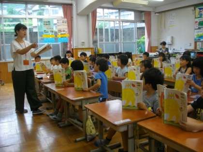 1年生の国語の教科書には,ライオンの絵がかいてあります。音読の時には,たくさんのライオンが立っているのをみることができます。