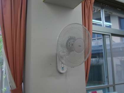 1,2年生の部屋に,壁掛け扇風機を新設しました。