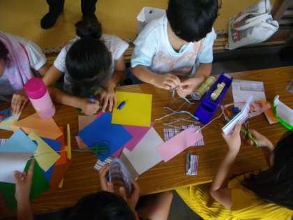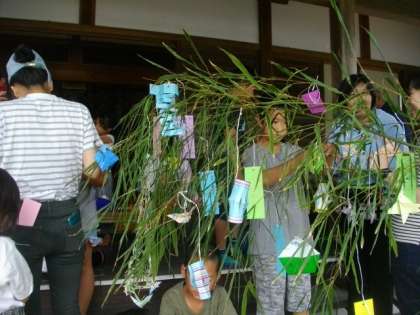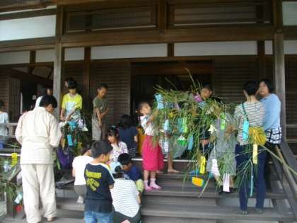 地域にあるお寺で,七夕飾り作りがあり,市原野児童館に通う子どもたちが参加をしました。願い事を書いた短冊や,かわいいかざりでいっぱいになりました。
