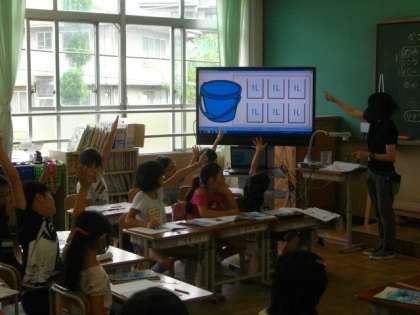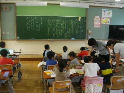 2年生は,算数で「かさ」の学習をすすめています。隣のクラスでは,国語で「うれしいことば」をテーマにして作文をしています。
