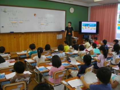 6年生は体育に取り組んでいます。1年生は,算数で問題作りに取り組んでいました。