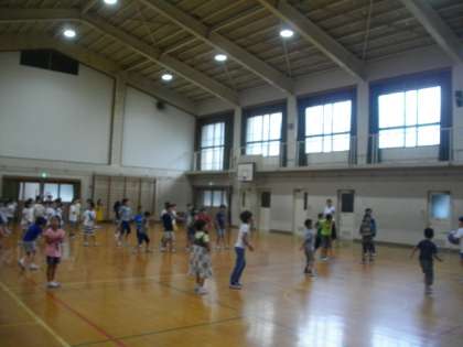 急に雨が降ってきたので,体育館で「みんな遊び」をしています。