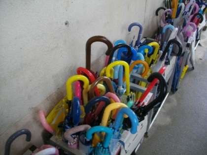(傘をさすときに,上からみてわかるようにお名前が書いてあると,すぐに自分の傘をみつけることができます。同じ傘もたくさんあるようですので,ぜひ記名をお願いします。)