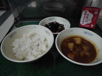 「ひじきのソテー」には,ミックスビーンズとにんじんを使用しました。枝豆の緑色と,にんじんの赤色でとてもいろどりがよかったです。