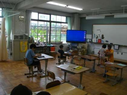 3組は,朝の会でダンスを踊って,かっこよくポーズを決めていました。2時間目はプリントを使って学習しています。