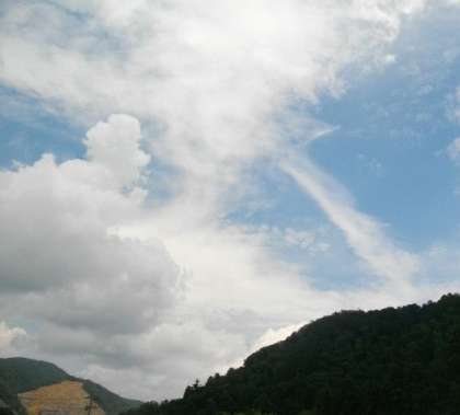 3階の窓から北側を望むと,雲が流れていました。