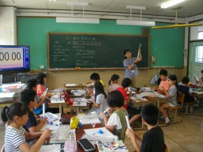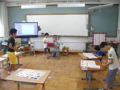 4年生は,理科で水や空気の性質調べをしています。3組は,お金の数え方を学習するために,買い物の場面を想定して学習をしています。