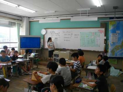 5年生は,社会科で山形県について意見交換をしています。3組は,暑中見舞いについて学習しています。