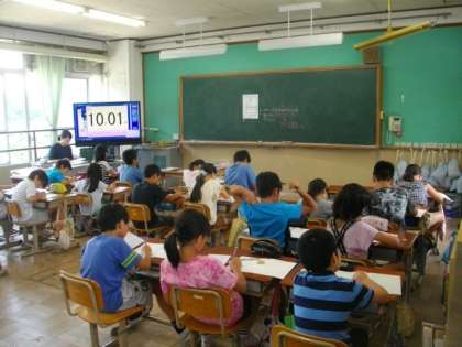6年生は,1時間目に学年集会をしました。4年生は,算数の計算練習に取り組んでいます。