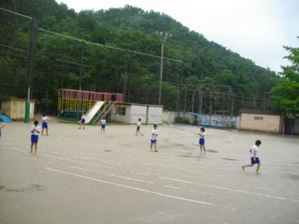 1年生が鍵盤ハーモニカの練習をしています。背筋がのびていて,とてもよい姿勢です。4年生は,水と空気の性質をしらべています。