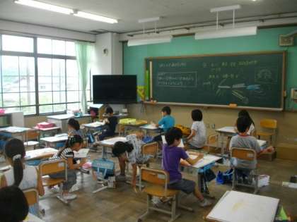 3年生は,習字の学習をしています。隣のクラスでは,絵の具を使って絵を描いていました。