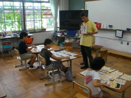 6年生は,算数で「比とその利用」について学習しています。3組では,体に関する漢字の学習ということで,絵カードを使いながら学習を進めています。