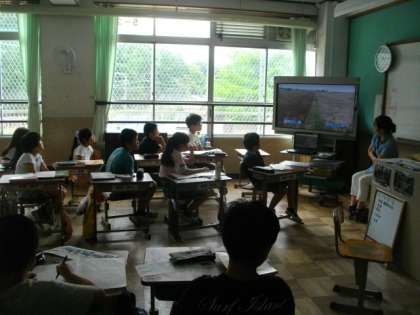 5年生は,農作物を栽培する際の工夫をテーマに,まとめのビデオをみています。