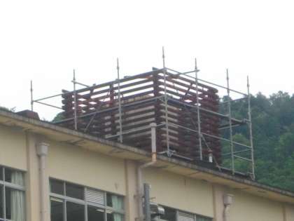 高架水槽廻りの塗装作業に来ていただきました。今日は,下地を塗っていただきました。