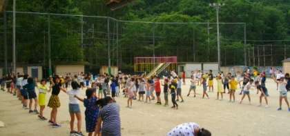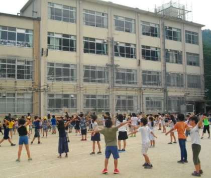 8時40分から,PTA地域委員さんにお世話になり,小学校のグラウンドにてラジオ体操が行われました。