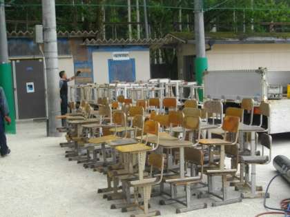 数年前から保管していた,老朽化した机・椅子を回収していただきました。