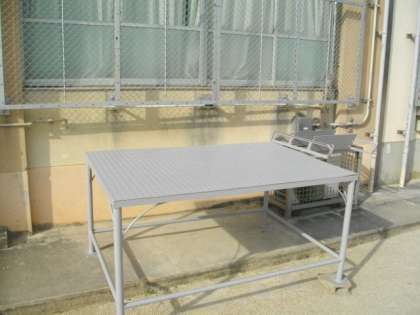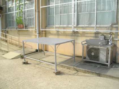 運動場の朝礼台の塗装をしました。