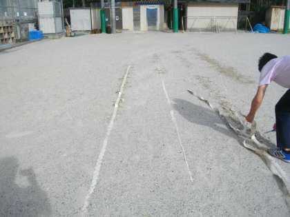 運動上のラインテープの補修を少しずつ進めています。