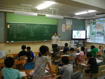 1年生は音楽で鍵盤ハーモニカを使っています。上手に音まねをしています。2年生は,算数でたし算とひき算のひっ算に取り組んでいます。