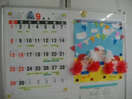 今日で8月がおわります。職員室前のカレンダーが新しくなりました。(たくさんの)いちたくんも応援してくれています。