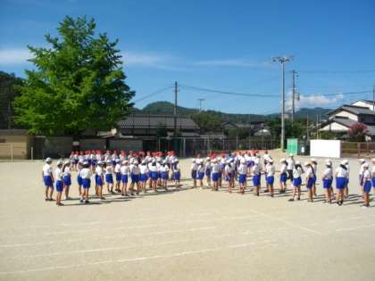 5,6年生が合同で集団演技の練習をしています。