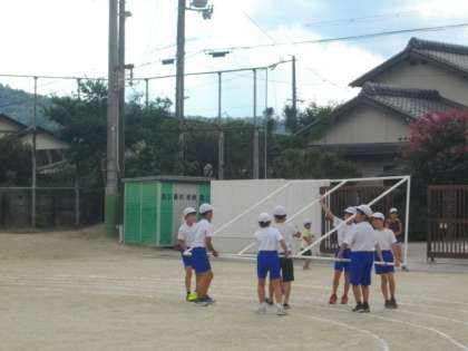 クラブ活動の様子です。外では,ミニサッカーを行う準備をしています。