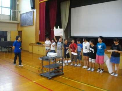 代表委員会・放送委員会・飼育委員会の発表のリハーサルをしています。