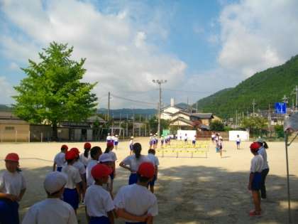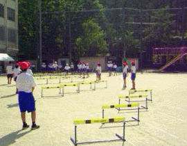 6年生がハードル走の練習をしています。練習を重ねるごとに,力強さが増しています。