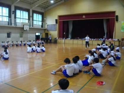 5,6年生が,運動会の集団演技で発表する立ち位置等の確認をしています。