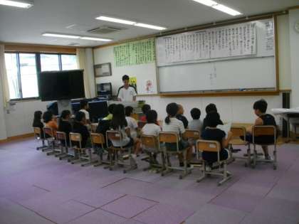 5年生は音楽に取り組んでいます。1年生も頑張っています。