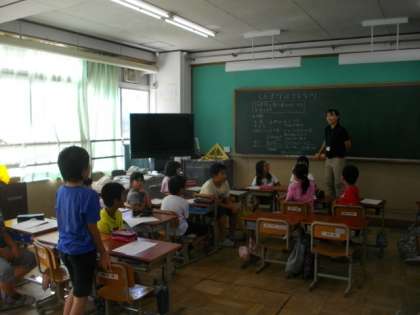 4年生は,くらま川の様子について,話し合っています。先日,川原に行ったときには,オオサンショウウオを見つけたそうです。