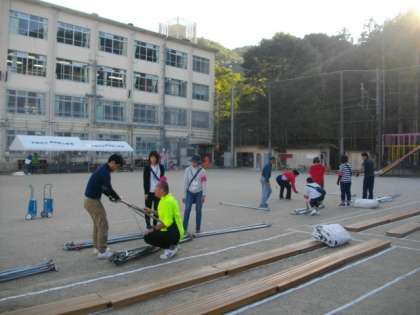 体育振興会,地域の方々,PTAの方々にお世話になり,テントを設置していただきました。