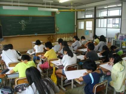 6年生は,絵画の下書きに取り組んでいます。