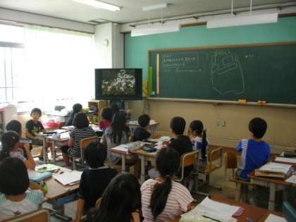 3年生は,校内にいる生き物調べをしたあと,ビデオをみています。