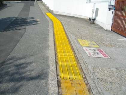 正門前のグレーチングの塗装を進めています。(本日は半分のみ)