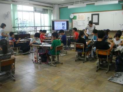 5年生は,習字に取り組んでいます。