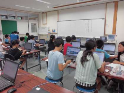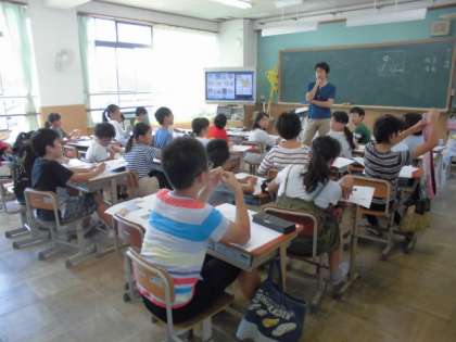 6年1組は図画工作科でお話の絵を描いてます。2組は国語科「未来がよりよくあるために」で自分の考えをPCで原稿に打ち込んでいます。