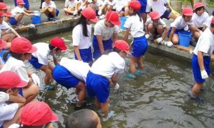 説明を聞いて、いざ「はなころ池」へ。