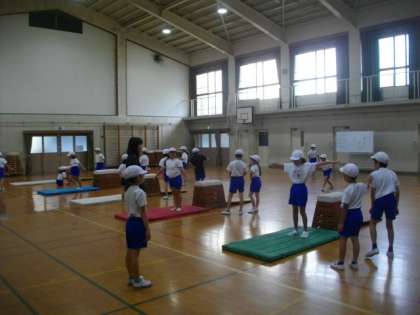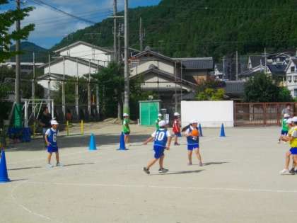 3年生の体育の様子です。鞍馬小学校のお友達もいっしょに学習しています。