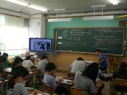 6年生は,社会科の学習で明治時代の様子について学習しています。ビデオ資料をみながら,予想を確かめているクラスもあります。