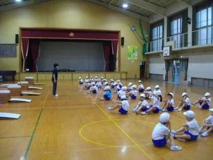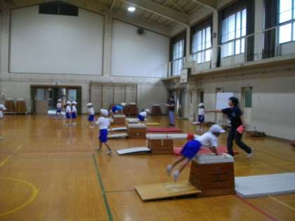 1年生の体育の様子です。跳び箱は,子どもたちが声を掛け合って,自分で用意をすることができるようになりました。