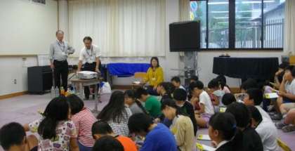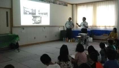 地域にある川島セルコン様にお世話になり,4年生が環境についての学習を進めました。今日は,昔の市原野の写真の紹介をまじえ,鞍馬川の果たしてきた役割と私たちが大切にしたいことについて学習をしました。お話を聞きながら,熱心にメモをとる姿が印象的でした。