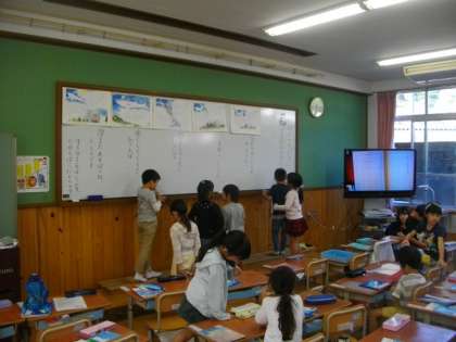 1年生は,国語で「くじらぐも」を学習していたようです。(中間休みの様子です。)