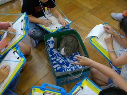 1年生が生活科でうさぎの観察をしています。