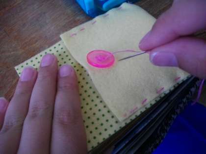 5年生は,家庭科でボタン付けをしています。