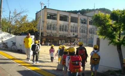子どもたちが登校してきました。校門前では,毎朝PTA会長さんが笑顔で子どもたちを迎えてくださいます。何人かの子どもたちは,毎朝ハイタッチをしてもらってうれしそうに教室に向かっています。