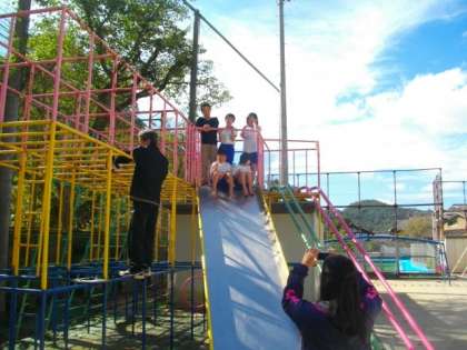 3組は,チャレンジ走のあと,みんなで総合遊具に上がってハイポーズ。そのあとは,さっと着替えて,算数の問題に取り組んでいました。