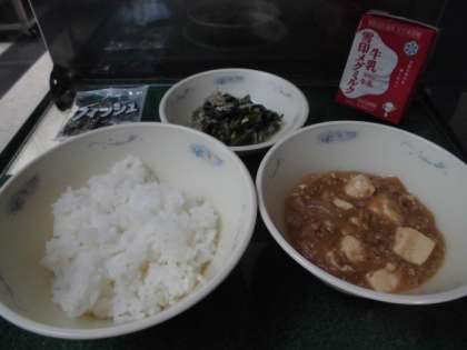・マーボ−どうふとごはんをいっしょに食べると,さらにおいしくなりました。